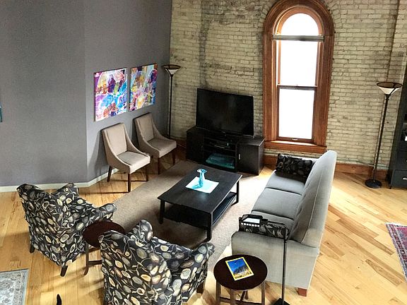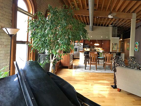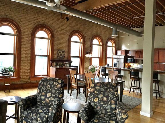 Elegant, modern condo right in the city center. Nicely updated. 13 huge antique windows. Hardwood floor, open beam 15-foot ceilings, & exposed brickwork. Kitchen has granite countertops, and stainless steel appliances featuring a gas stove, dishwasher, pantry and garbage disposal. Washer/vented dryer in unit. Granite countertop vanity in bathroom with combo shower/tub. This building has an elevator! Bike rack in secure basement. Ample storage in unit along with extra, secured storage unit in basement. This is a unique two bedroom, one bath condo located in the historic Peck building. Only 12 units in the building making for a friendly, comfortable environment. Loads of character! Located minutes from everything downtown. Heated sidewalk. Everything is nearby: park, theatre, library, market, restaurants, museums, convention hall, arena, and hospitals. INCLUDES 1 PARKING SPOT! Second spot available trough city. Owner pays for trash, recycling, water & HOA fees, one parking spot