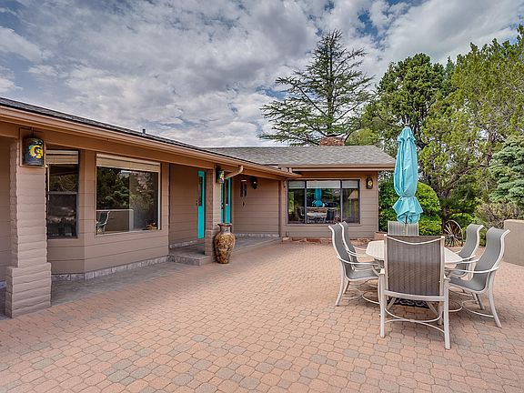 Entire house was recently renovated. Includes all new scratch resistant water proof Pergo flooring throughout the house, marble bathrooms with a soaking tub in the second bathroom. Completely renovated semi custom kitchen with beautiful quartz countertops and all new stainless steel appliances, gas stove and pullout pantry doors, pullout spice rack and pullout trashcan, quartz sink, touchless faucet. New HVAC system with integrated air purifier. Custom cabinetry work in the hallway closets and baywindow with storage seat. New doors, casing and baseboards throughout the house. New Sedona red tint stamped driveway with a walkway on the side that wraps to the back to a small patio behind the garage. The driveway is long! You can easily park three cars on the driveway, plus you have the 2-car garage and a small carport at the end of the driveway which can also be used as a sitting area/gazebo.. Insulated garage with windows and door that lead to the back yard for a bright work space with nice cabinets for storage and a workbench. 2-person infrared spa in the renovated garage. 3-bedroom Rolling Hills home with stunning red rock views from most rooms. Sunken living room with gas fireplace & lots of windows and three sliding doors that take you to the back yard, all recently replaced with top of the line Anderson windows and sliders , new ceiling fans in all rooms. added recessed lighting throughout the house on dimmers. New paint inside and out. Paver front patio courtyard entry with water fountain. Sits at the top of the cul-de-sac for privacy yet you're walking distance to Thaquepaque and local restaurants and galleries.