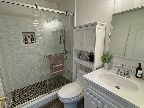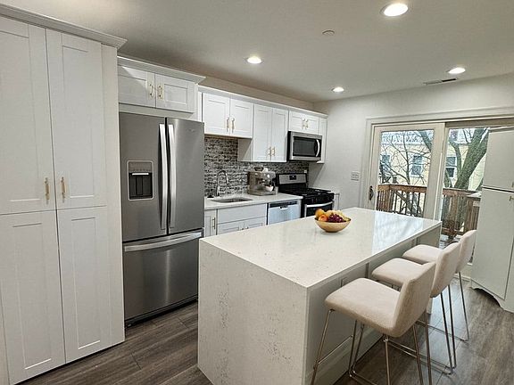 Looking for a penthouse 2-bedroom in the heart of East Boston, near Bremen Park and close to the Airport Blue Line Station? This sun-filled apartment was gut-renovated in 2019 and offers modern living at its finest. Ascend your private staircase to find a cozy living room that seamlessly flows into a sleek, contemporary kitchen, featuring stainless steel appliances, a quartz waterfall island, and a slider leading to your very own private deck perfect for relaxing or entertaining. Both bedrooms are spacious, easily accommodating queen-sized beds, and boast generous closet space. The renovated bathroom is a showstopper, with custom tilework and modern fixtures, while the convenience of in-unit laundry and year-round comfort with a high-efficiency NEST central air system add to the appeal. Located on a quiet side street, this apartment is surrounded by neighborhood gems like Bremen Park, Tall Ships, and Mida. *Unit photos are virtually staged.