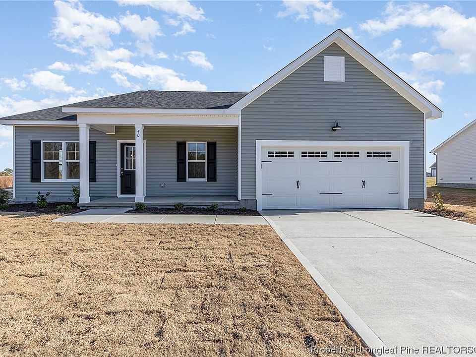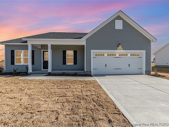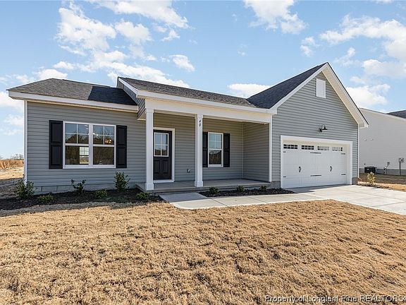 New construction built by A & G Residential! Welcome to your new ranch-style home nestled in the stunning rural outskirts of Lillington. As you step inside, you'll be greeted by the spacious open-concept design of kitchen, living, and dining. Relax by the inviting gas fireplace showcased in the living room, or prepare meals in the feature-rich kitchen with granite countertops and sleek stainless steel appliances. This home boasts exterior charm and premium durability with 30-year architectural shingles, premium vinyl siding, and a professionally landscaped yard. Inside, you'll find comfort and convenience with a generously sized owner's suite at 13'2"x15'4" and a spacious 6'4"x8'4" laundry room. The attention to detail continues with features like 9' smooth ceilings, brushed nickel hardware, and crown molding in the foyer, elevating your living experience. Quality assurance is woven into this home. Less than 10 minutes to Raven Rock State Park!