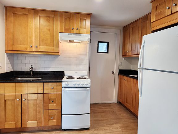 Sunny and Quiet rear unit 1 bedroom apartment with living room and kitchen. New paint and carpet. Full bathroom. Private entry off deck, yard and garden. Private parking behind house. Close to Springdale shopping center. No smoking. One year lease is required. Application fee is $30.