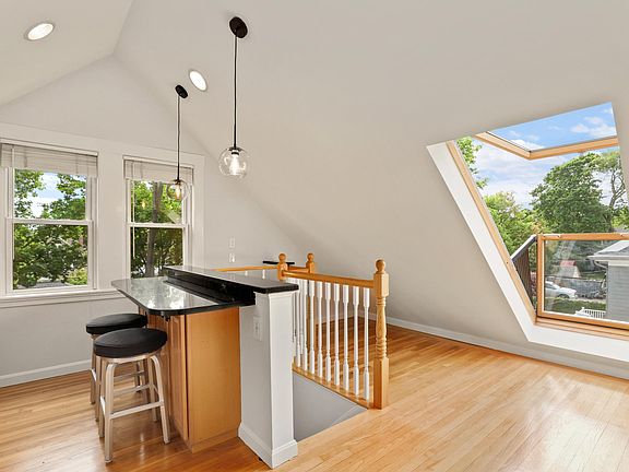Located in highly sought after Roslindale Village! This two bedroom penthouse condo located on a quiet tree lined street has everything you need. Kitchen features Stainless Steel appliances, breakfast bar and Hardwood Floors throughout. Velux Skylight balcony offers a beautiful view of the neighborhood and additional skylights in the kitchen and living room provide tons of natural light! Stackable washer and dryer in unit are located in the completely renovated bathroom (2021). Other updates include new Furnace (2020), new Paint (2021), new lighting fixtures and Hot Water Tank (2016). Comfort meets luxury with a Nest thermostat, Central AC, and new USB outlets. With off-street parking, garage, and additional basement storage, all that's left to do is move in! 20 minute walk to Forest Hills, 3 minute walk to Roslindale commuter rail stop, multiple bus stops, 5 minute walk to the Arboretum, great restaurants in the Village, and a Target 1 minute away! 1st and last month's rent due with lease, and prospective renters are required to complete a background check. No broker fees or security deposit! Tenants responsible for utilities and proof of renters insurance. Tenants willing to sign 2-year lease get the first month free!