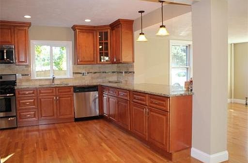 Stunning remodel from the studs out. Great mixture of new construction but with some antique detail. Huge open living room that flows into open kitchen with granite breakfast bar that flows into dinning room. Excellent floor plan for living or entertaining. 2nd floor has large master bedroom, separate laundry room, full bath and 2 additional good size bedrooms. Very large nearly a half acre private lot, home is very conveniently located the highway and shops close to the south Weymouth and Hingham lines. Hard not to love this house nothing out there like it at this price.