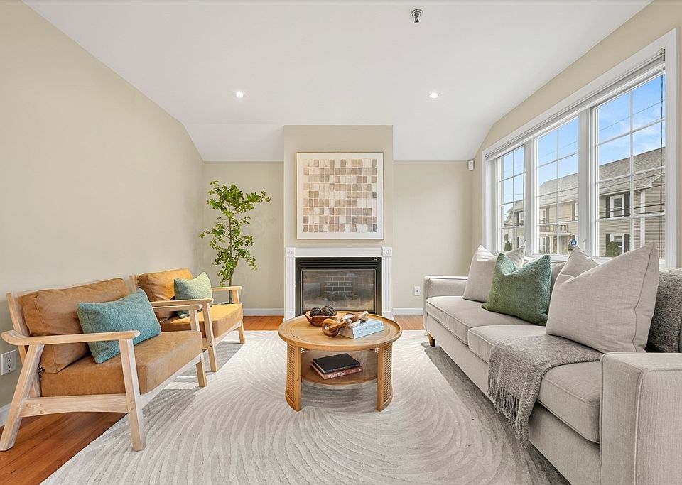 Welcome to this stunning townhouse condominium at Waltham's ultra desirable Fieldstone Crossing. This beautiful residence with all new exterior siding combines modern comfort and convenience and features central AC and direct access GARAGE PARKING for 2 cars! The living area features recessed lighting, multiple windows, hardwood floors and a beautiful gas fireplace, creating a warm and comfortable ambiance. The well-appointed kitchen with granite countertops, gas range, stainless steel appliances, dishwasher and abundant cabinet space. The main living level also has a 1/2 bath with full size washer and dryer. A private balcony with french doors off of the kitchen/dining area provides great sunlight. Experience smart living in a wonderful community, with all the conveniences you desire at your doorstep! This is an incredible location just minutes from all of the wonderful shops and dining on Moody Street, as well as the MBTA and Charles River.