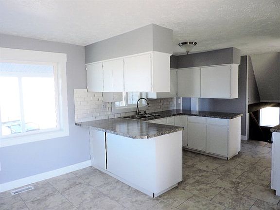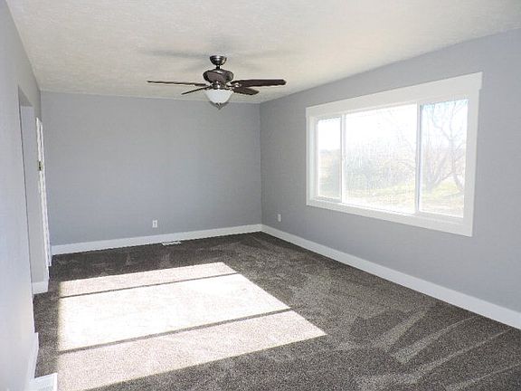 Newly updated home sits on over 1.5 acres. Home has brand new floor coverings and paint throughout. New metal roof and new windows make this home maintenance free. The living room has big picture window for lots of light. The kitchen and dining area is large. New dishwasher and lots of cabinets. There is a bath just off of the Laundry room. Upstairs is a large master bedroom with door that leads into the full bath. Second bedroom completes the upper floor. In the basement there is another bedroom and family room with fireplace. The property is ready for you to bring your livestock NO COVENANTS. One acre building lot to the East could be purchased for $35,000.