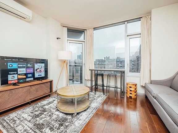 NO BROKER FEE Unit is currently furnished. It can be delivered as furnished, partially furnished, or vacant for the same price. "The Wave" is a unique building in the North side of Williamsburg. It is located right off the waterfront and the ferry, the view of the water and skyline is exceptional! Packed with the best amenities for your comfort and leisure. Sunlit 2 bed 2 bath apartment is a real waterfront gem! Large balcony in the living room with amazing direct waterfront views, over-sized floor to ceiling windows to allow lots of sunlight, large king bedrooms with good closet space. Glossy hardwood floors throughout the apartment, L shaped large kitchen, dishwasher, granite counter tops, and stainless steel appliances, high ceilings, central AC. BUILDING AMENITIES - Spa - Pet spa - Full LARGE Indoor Heated Pool - Sauna - Steam Room - Full Gym - Yoga Studio with virtual yoga instructor - Virtual personal trainer - Huge play room for kids - Movie Theater - Snack Bar - Game Room (Billiards, TV, ping pong, cabanas, BBQ) - Massage Room ( Masseuse provided upon request) - Roof-deck lounging and landscaping with exceptional views - Unique private Balconies and rooftop - Private Cabanas - Tanning Deck _ light up in the dark waterfall in courtyard - BBQ/ Grills - Library/Business Center - Glass conference room with large conference table and screen - Indoor Heated Parking Garage - Free Bike Storage - Storage Units - Free Wifi - Package Room - Live in Super -No pet fees The North side of Williamsburg is a one of a kind neighborhood to live in. With the Flea market, smorgasbord, latest culture foods, cafes, restaurants, shopping, rooftop bars and nightlife, you will have the ultimate experience living here. The location offers spectacular city skyline views without having to worry about the hustle and bustle of Manhattan. Being one of the most desirable neighborhoods around the world, explore La Esquina next door or grab a perfect Latte at Sweet Leaf, or perhaps the adventurous ice cream flavors at Oddfellows next door. The East River State Park and Mcarren park right next door, the East River Ferry and the L, J, Z,G and M train provide easy commute to Manhattan and Brooklyn. Ferry access conveniently located on the pier 1 block away with multiple stops in Manhattan.