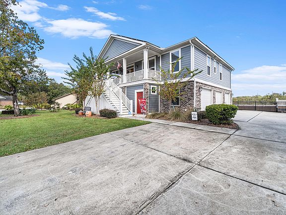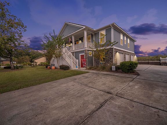 Beautiful deep water lot on the reservoir with pool ready for its new owners to call home! This 5 bedroom, 3 car garage raised home with elevator, was custom built in 2016. Entering in through the large full front porch in to the spacious foyer, you'll notice the inviting grandeur of the high ceiling and tall trim. With a separate formal dining room, perfect for entertaining! The open living area is complete with floor to ceiling custom built-ins and fireplace, and leads seamlessly into the kitchen and eat-in dining area. All set with a beautiful water backdrop as far as you can see.On the main floor you will also find two guest bedrooms and bathroom, along with the large owners suite with walk-in closet and spacious ensuite bath. Leading downstairs to the finished first story are two more bedrooms, a full bathroom, and is completed with a large secondary family room or can be used as as mother-in-law suite with built-in cabinetry ready for a kitchenette. Attached is the 3 car garage with plenty of room for extra storage! Get ready for all kinds of out door entertaining! Off the first story is a screened-in, tiled deck with tons of space for grilling, relaxing, and watching the game! Below, you will find an outdoor bar area overlooking the beautiful backyard, pool and dock. Perfect for all year entertaining in the Charleston sunshine!