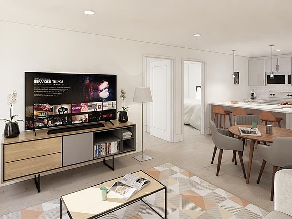 Pet Friendly, 3BR/2BA with Modern Kitchen with stainless steel appliance package, microwave, electric stove, quartz countertops, modern baths, recessed lighting, ductless A/C in unit, laundry in the building, parking for rent.