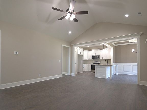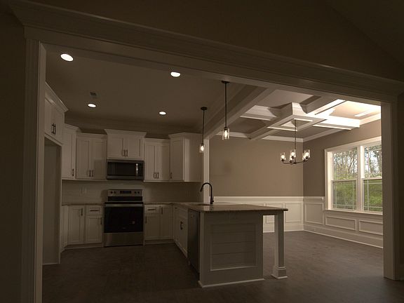 Beautiful new home with 3 beds / 2 baths / bonus & flex room / screened porch. #Interior features *gorgeous entry foyer with gorgeous trim details *visually stunning coffered tray ceiling & exquisite trim work in the dining area *the kitchen is stunning with recessed & pendant lighting, granite tops, tile backsplash, eating/serving bar, Whirlpool brand stainless steel appliances, closet pantry & upgraded wood cabinets boasting a beautiful white color, soft close drawers/doors & a visually attractive staggered design *cathedral ceiling in family room w/ gas log fireplace *tray ceiling, double vanity, garden tub w/ tile surround, luxurious & oversize tile shower with glass door/surround, & double walk-in closets featuring adjustable wood shelving in this 'must see' owner suite *laundry room with built in cabinets and tile floors *spacious secondary bedrooms #Exterior is a show stopper featuring *modern color palette *lovely stone around the upgraded garage door *Dutch hip roof design *stylish dormer with window accent *large screened porch w/ ceiling fan *sodded front yard *rocking chair front porch *finished 2 car garage *spacious .6 of an acre lot