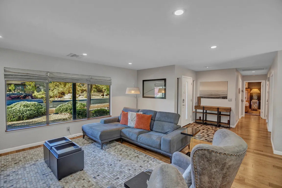 Quiet street. Big personality. This West Sedona retreat is the definition of small home, major impact : a single-level stunner taken down, reimagined, & rebuilt with the kind of designer finishes that make you pause, touch the textures, and say, ''Okay, this is good.'' Every inch feels intentional. Thoughtful color palettes, engineered wood ...