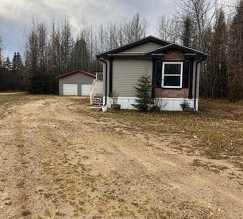 Acreage Living with Town Convenience — Just Outside Blue Ridge Enjoy the best of both worlds with this 1.21-acre property located right on the edge of Blue Ridge. This acreage offers the peace and space of country living with the convenience of town services — including town water and a septic system that pumps into the town sewer. You’ll love the pavement all the way to your driveway, with only the last 100 meters being gravel. The 2008-built mobile home provides a spacious 1,520 sq. ft. of comfortable living space. Inside, you’ll find 3 bedrooms, 2 full bathrooms, and a den — perfect for a home office or hobby space. The bright, open layout features a functional kitchen, generous dining area, and a welcoming living room ideal for family gatherings. A 10' x 14' sunroom extends your living space and offers the perfect spot to relax and enjoy the surrounding views year-round. Outside, a 24' x 26' garage with radiant heat, concrete floor, and metal roof adds both practicality and value — great for vehicles, storage, or a workshop. The yard offers ample room for gardens, kids, and pets, with plenty of privacy and a true acreage feel. This property combines small-town comfort, modern amenities, and country tranquility — an ideal place to call home.