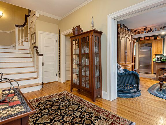 Step inside to a gracious foyer with an elegant staircase, where timeless craftsmanship is on full display. The main level boasts gleaming hardwood floors throughout, a formal living room with built-ins and a gas fireplace, and a refined dining room with an adjoining pantry. The kitchen seamlessly connects to a spacious great room, creating a perfect blend of historic charm and modern comfort.