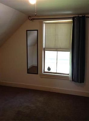 Townhouse style apt for rent on 2nd and 3rd fl of multi unit. Carpeted living room with ceiling fan, good sized, carpeted bedroom with ceiling fan, older kitchen and bath on 2nd fl. 3rd fl has 2 carpeted bedrooms and nice sized closets. Combo gas and electric heat in rooms, gas-on-gas stove. First and sec dep required. TAW. No pets. No smoking. Avail now.