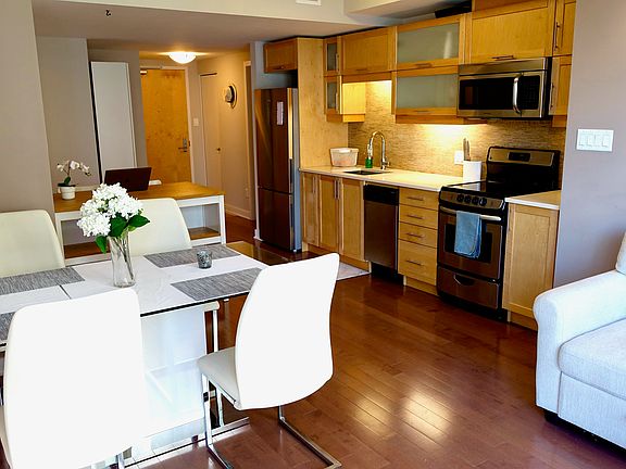 All the amenities of a modern condo, two bedrooms and two full bathrooms, fully furnished and centrally located. You have an 8-minute walk to uOttawa, 5 minutes to Parliament Hill and 3 minutes to the National Arts Centre. Boutique shops and fine dining are on Elgin Street steps away. The open layout offers space for at-home work plus generous dining and relaxing space. Second bedroom includes a comfortable sofa bed and TV for maximum flexibility. Gym, swimming pool and sauna all included along with utilities and highspeed internet. Party room, terrace with BBQ's, and concierge/security are also part of the package. Full Farm Boy grocery located steps away at the base of condo tower next door. Parking is available. The term of the lease is flexible, with a minimum of six months. There is no smoking in the building.