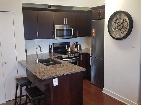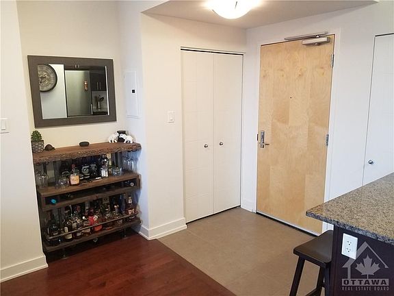 Welcome to Tribeca East, luxury living in the heart of Ottawa. This 1 bed/1bath features an open concept layout, floor to ceiling windows that frame an unobstructed southern view. 9 foot ceiling, Quality finishing throughout, espresso wood cabinets, four high-end SS appliances. In unit laundry w/stackable front-load washer/dryer, hardwood floors. Ideally located with a Farm Boy on the ground level & minutes away from LRT, Parliament, Financial District, City Hall, Court house and more. 1 heated underground Parking space and storage locker. Building amenities include indoor salt water pool, gym, lounge, guest suite, concierge managed package drop off, rooftop patio with BBQ's. Available July 1st, 2022. Rental application and proof of employment required. The picture was taken from the previous tenant.