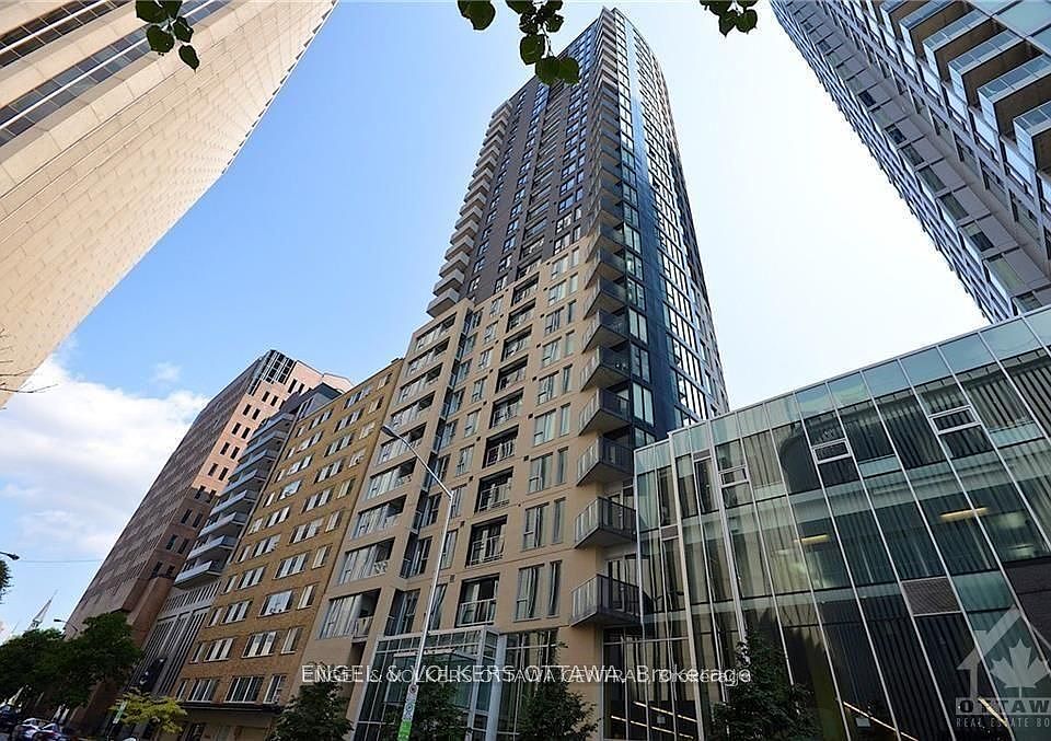 Welcome to Tribeca South where downtown living meets modern style.This bright and spacious 2-bedroom, 2-bath condo has it all: underground parking, a storage locker, and a sun-soaked interior wrapped in floor-to-ceiling windows. Recently upgraded marble tile flooring flows through the main living areas, adding a sleek, luxurious feel, while the bedrooms keep their warm hardwood finishes for the perfect blend of style and comfort. Quartz countertops, stainless steel appliances, and custom blackout/privacy blinds complete the polished look. Step outside your door and enjoy resort-style amenities: a 24-hour concierge, 7,000 sq. ft. landscaped terrace, 4,500 sq. ft. recreation centre with a lap pool and cutting-edge fitness facility, plus rooftop access with jaw-dropping panoramic views of the city. Need groceries? Farm Boy is right downstairs. Want a night out? You're just steps from the ByWard Market, Rideau Canal, Parliament, Elgin Streets buzzing dining scene, and endless shopping and entertainment.Vacant and move-in ready, this is your chance to own a stylish downtown retreat in one of Ottawas most coveted addresses. Life at Tribeca South isn't just convenient it's connected, vibrant, and full of energy. Some photos from when previously tenanted.