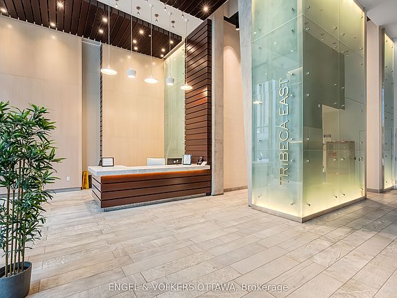 Welcome to the Gansevoort model at Tribeca East, a stunning 2-bedroom, 2-bathroom corner condo on the 9th floor with breathtaking city views. Perfectly situated in the heart of downtown, you're just steps from Parliament Hill, Elgin Street, Bank Street, the ByWard Market, Rideau Centre, the Ottawa River, and the Rideau Canal. For added everyday convenience, Farm Boy and The Wine Shop are right upstairs.This bright and spacious residence offers approximately 955 sq. ft. of stylish living space, featuring an open-concept layout, hardwood floors throughout, granite countertops, and a private balcony overlooking the city skyline. The kitchen has been upgraded with a sleek, functional island perfect for cooking, entertaining, and extra storage. Residents of Tribeca East enjoy exceptional amenities, including a saltwater indoor pool, fitness centre, party room, rooftop terrace with panoramic views, guest suites, concierge service, and more. This unit also comes with 2 storage lockers for ultimate convenience and extra storage. Don't miss your chance to own this sought-after downtown address and experience modern city living at its finest.