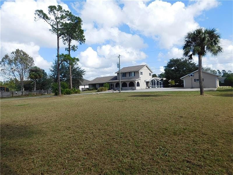 HUGE reduction in price! Gorgeous 5 Bedroom, 3 bath home with a screened in pool, Jacuzzi and HUGE outdoor entertaining area! Property is situated on 4 LOTS and the 3 car garage is any car lover's dream and also has a workshop. The kitchen is amazing and has plenty of cabinets, an island, and a large walk-in pantry for all your goodies. It's an open floor plan so the kitchen opens up into the eating area and great room, perfect for entertaining. All of the bedrooms are located downstairs with the exception of the master suite which takes up the ENTIRE second floor! You could also turn the master suite into a play area for the little ones, a man cave, the possibilities are endless! The pool area is screened in and is equipped with a baby barrier to protect the little ones. There is also a deck located outside the pool cage which is perfect for grilling with friends and family. The house is equipped with two air conditioners which were installed in 2013 and 2 hot water heaters. There are plantation shutters, new screening on lanai, new pool pump, new carpet and so much more.