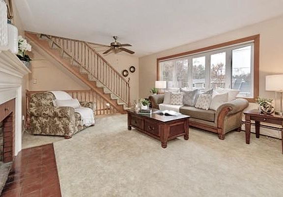 - Liv Dscrp: Flooring - Wall To Wall Carpet, Fireplace, Flooring - Hardwood, Ceiling Fan(s)