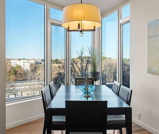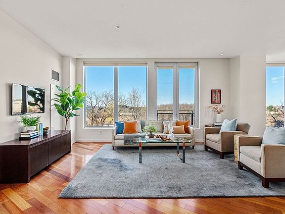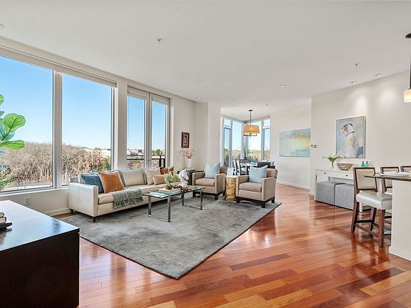 "Right size" your lifestyle with convenience and luxury in this spacious 2/3 bed, two bath condo with polished Brazilian cherry floors and 9' ceilings. This home is a lovely corner/end unit on the 5th floor, with tree-top views & unmatched natural light. Expansive primary suite with two generous closets, lux marble bath w/ double sinks, shower & separate tub. The den has a walk-in closet, too – ideal as an office/study or an additional bedroom. We think you will adore the dining room, kitchen with breakfast bar, open concept floor plan and abundant closets! Two indoor parking spaces and an on-site storage unit add to the appeal. A full-time on-site property manager and 24-hour concierge service ensure easy living. This building offers a clubroom, conference/dining room, library, game room w/billiards, gym w/steam room, & 1+acre rooftop park with walking path, seating & putting greens. Direct secured indoor access to the mall; Cochituate Rail Trail entrance across the street.