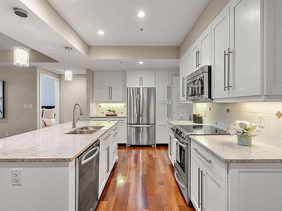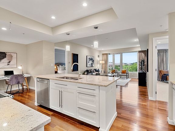 Your Nouvelle Lifestyle awaits! This freshly painted two bedroom offers incredible views, a highly sought after floor plan and custom California Closets and built-ins throughout. It is perfectly situated on the 6th floor near the rooftop park and Club Nouvelle lounge, gym, game room, and more! The sun-filled living/dining areas boasts 9 foot ceilings and gleaming wood floors. The updated kitchen has custom cabinets, counter seating for four, a desk nook and pantry/laundry room with an abundance of storage. The expansive primary bedroom features a dressing area appointed with exquisite built-ins and a spa-like marble bath with a double vanity, soaking tub & shower. The spacious guest room features a large walk in custom closet and the main bath has a tub/shower. Includes two garage spots and extra storage. Enjoy 24 hour concierge, direct mall access and a high-end pickle ball venue coming soon! Easy access to routes 9/30/95/90, Cochituate Rail Trail, and many shops and eateries!