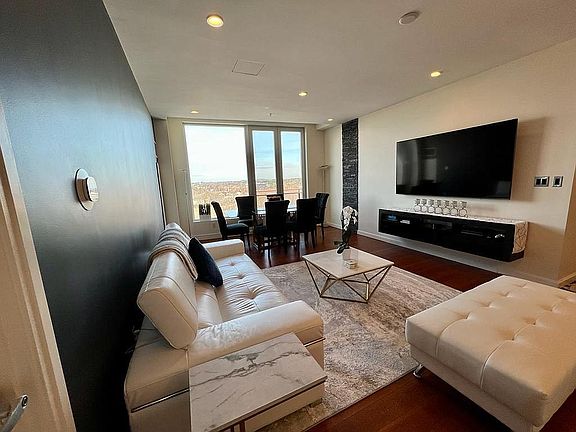 *Viewings by appointment only* NO BROKERS/AGENTS PLEASE! Welcome to the luxurious 40 Nouvelle Way. This ninth floor home has an open floor plan & in like new condition with captivating tree top view. As soon as you enter you're welcomed by floor to ceiling windows splashing the home with light & complimenting the gleaming floors throughout the kitchen & living area. The kitchen contains granite counters, a center island with breakfast bar and stainless-steel appliances. The master bedroom features a spacious customized elfa walk in closet that connects to the master bath with a double vanity, tiled shower stall with a full glass enclosure, and a soaking tub. The second bedroom has a full customized elfa walk in closet, second full bathroom is located in the hallway, an alcove ideal for office space or bar & a laundry room with extra storage just off of the kitchen. Two car deeded garage parking & extra storage space on the 2nd floor. Majorly upgraded unit and smart equipment: • Modified floor plan for larger master bedroom • Professionally installed, in-wall sliding doors to save space in the room • Brand new carpets installed in both bedrooms 2 years ago • Premium stone wall tastefully installed in the library area, and near dining area • Upgraded premier Kohler faucets installed in kitchen sinks • Brand new Samsung dishwasher, washer and dryer installed in August of 2021 • Upgraded blinds installed in both bedrooms • All light switches and sockets upgraded to silver chrome, contemporary finishing • Luxurious architecture wall panels installed in master bedroom • Smart Technologies throughout the home