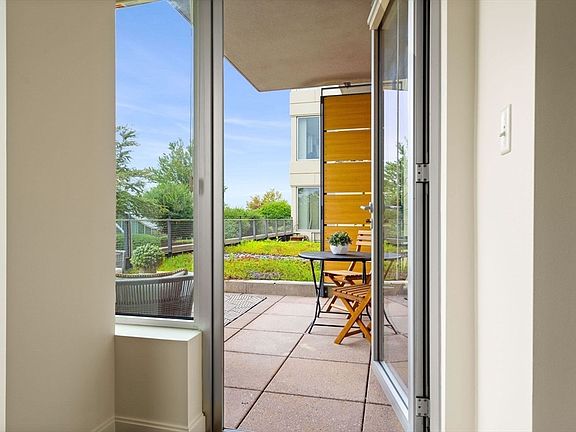 Nouvelle Luxury! Rarely available 6th floor terrace unit with 168 sf private patio overlooking rooftop gardens - ideal for lounging, al fresco dining and firing up the electric grill! A+ location on 6th floor home to 1.2 acre rooftop parc and Club Nouvelle with gym/sauna, game room, conference room, chef’s kitchen and more! This turnkey home has brand new hardwood floors, carpet, lighting, and fresh paint throughout. The kitchen has new appliances, custom white cabinets and counter seating and the living/dining area boasts beautiful views and an abundance of natural light. The primary suite features a spa like bathroom with double vanity, a large shower and walk in closet. Enjoy a spacious guest room, full guest bath and 2 large storage rooms with custom built-ins and laundry. Two garage spots & storage locker included. Enjoy 24 hour concierge, direct mall access, and a pickle ball venue coming soon! Easy access to major highways, Cochituate Rail trail and many shops and eateries!