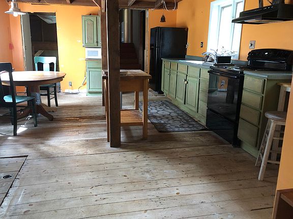 Welcome to this charming 1830 farmhouse nestled in the heart of Veazie. This time-worn gem exudes an undeniable sense of history and character, awaiting the touch of an inspired visionary. The front part of the home is the original house, which has its unique charm, including a front porch and interior 14'' pumpkin pine floors harvested from the property itself. Inside, through the double-height entryway, you'll find a space that's brimming with possibility. The middle of the home is the heart, with the kitchen/dining area featuring wood floors and exposed beams. Head downstairs for a potential family room, or upstairs through the vaulted archway to find additional bedrooms. The primary bedroom features a floor that is a gorgeous, reclaimed Santos Mahogany (hand-cut tongue and groove), and double closets. Outside, the possibilities continue with a large barn on a poured concrete foundation, with storage above. This location is fantastic, only 10 minutes to either the UMaine campus in Orono or downtown Bangor.
