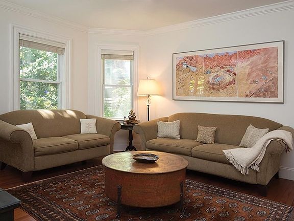 Like a single family with the ease of first floor living. The scale and layout are exceptional for both daily living and entertaining. Large skylights and perfect orientation ensure light filled rooms. First floor has living room, dining room, and open kitchen with sliding doors to a lovely deck and green retreat backyard. First floor also has master bedroom with vaulted ceiling and bathroom, two more bedrooms and one full and one half bathrooms. Lower level holds a spacious family room, large bedroom and a bath, and an office nook. Private storage space. One garage space and tandem space for two more. Beautifully maintained since 2007 gut renovation. Located on friendly Pill Hill neighborhood tree-lined street which dead-ends at conservation land. Close to Lincoln School, BHS, restaurants, cafes and market, the Green Line, and nearby Brookline Village. Longwood Medical Center and downtown Boston, a short trip away.