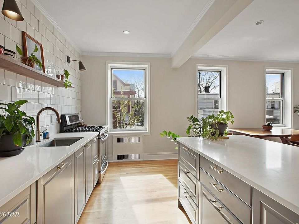 Currently laid out as a 1BR *plus*, there is more than enough space for a conversion to a true 2BR. Impeccably renovated, with many original pre-war details maintained. The apartment gets strong western light, has hardwood floors, in-ceiling speakers and lighting, completely updated electrical, four closets, and designer touches throughout. Modern designer kitchen with new top-of-the-line Bosch appliances, quartz counters and island, touch-activated faucet with built-in garbage disposal. Renovated bath with deep-soak tub. Well maintained pre-war elevator coop at the top of Ocean Parkway in Windsor Terrace which offers central laundry, free storage area for each unit, and bike storage. Short walk to Prospect Park, charming restaurants, cafes and coffee shops of Windsor Terrace (such as Le Paddock, Brooklyn Commune, Butterfunk Kitchen, Elk Cafe, Della and The Fox and the Crepes) and less than a block away by the Fort Hamilton F and G trains. Agent makes no representations about coop acceptance of unit layout changes.