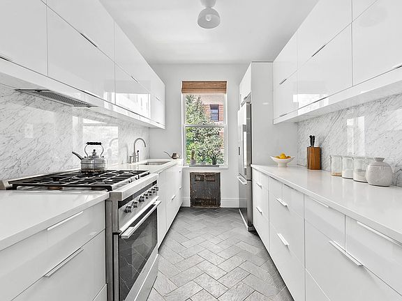 OPEN HOUSE AND SHOWINGS BY APPOINTMENT ONLY. Book your appointment here (click or copy/paste link): bit.ly/40OPKY3DScheduler, Supersized Designer Masterpiece. Over 1200 SF, this gorgeous 2 bedroom apartment offers all the space you need for working from home and entertaining. * Foyer with marble floor and built-in shelves and shoe storage * Renovated eat-in kitchen with a window, silestone quartz countertops, carrara marble backsplash, herringbone slate floor tile and Fisher & Paykel stainless steel appliances. * Renovated bathroom with Duravit extra-long soaking tub, marble tile walls, Roberne medicine cabinet with interior power outlets and radiant heat under basalt mosaic tile floors. * Extra large primary corner bedroom with double exposures. * Extra tall closet doors for easier access, including a walk-in storage closet. Plus private storage in the basement. * New solid white oak floors finished with Monocoat in Fumed grey in matte finish. * Thoughtful details throughout such as vintage light fixtures, crown molding, tall baseboard molding, marble window saddles and oil rubbed bronze hardware. * In-unit washer/dryer * Pets upon approval; dog friendly building 40 Ocean Parkway is a lovely pre-war elevator coop building with solid financials. Amenities include in-building laundry, common garden, bike storage and live-in super. Superbly located just steps from Prospect Park, the Tennis Center, the Parade Grounds, Kensington Stables and F/G train station.