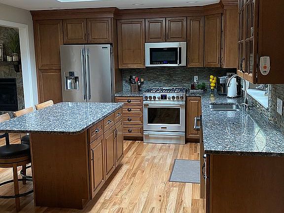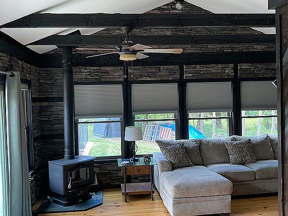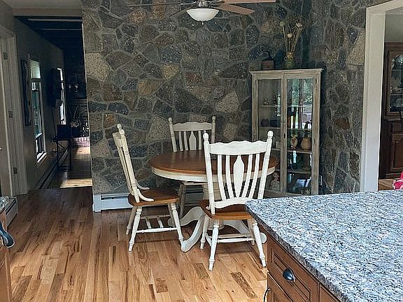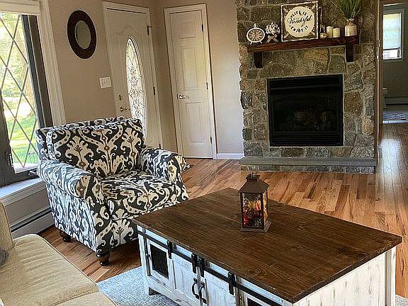 Newly remodeled open concept 1 story ranch with central air & a 2 car attached garage. 2 fireplaces (1 stone, 1 brick) , 4 season stone walled room with wood stove . Kitchen has granite countertops and Professional Series stainless appliances. Hardwood flooring throughout, tiled baths with jacuzzi tub, 1st floor laundry . Home completely renovated 2017 along with a new roof, furnace, windows and siding with a completely renovated inground pool and pool deck. Home is 2 bedrooms but can be easily made into 3 bedrooms. Finished Basement brings total square footage of this home to approximately 2400. Sale is contingent upon closing of new home