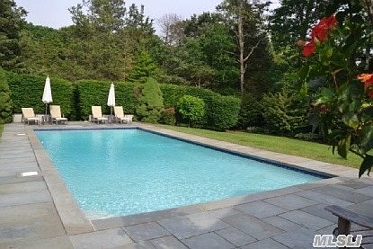 Immaculate three bedroom, three bath get-away with heated pool on magnificently landscaped property. Open lay-out, with inviting stone-floored sun room overlooking pool, flowering trees and lawn. Convenient to village and beaches. Just 90 minutes from the bustle of New York City!