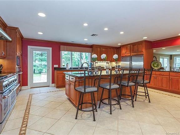 Come fall in love with this large and inviting ranch with over 4,100 sf in highly sought after South Wilton. Builder's custom designed home with all the bells and whistles - open concept living all on one level. Home boasts a stunning gourmet kitchen with top of the line SS appliances, custom cherry cabinets, prep sink, breakfast bar, desk area and oversized island. Host holiday dinners in the formal dining room while enjoying the expansive great room with fireplace and sliders to balcony. Step downstairs into the amazing finished basement for a round of pool and cocktails at the bar. Additionally on the lower level, is the perfect set up for in-law, au pair or extended family. Steps from the kitchen is the outside patio that boasts beautiful masonry work to include an outdoor fireplace where you can sit and enjoy the picturesque and meticulously manicured 3-acre property. There is an expansive 3 car garage leading to the mudroom - excellent for daily family living! There is also an added bonus, a huge unfinished basement area that can easily be turned into a home office or simply additional storage space or hobby room. The South Wilton location is minutes to the Merritt Parkway, I95 and Metro North train line. Do not miss this spectacular home in the best location in South Wilton! Motivated sellers!