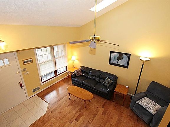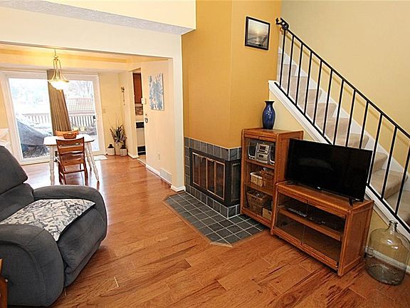 Easy Townhouse living! Enter the front door to vaulted ceilings and 2 skylights in the living room. All new vinyl windows let in tons of natural light. Enjoy the living/dining combination, and walk straight out newer vinyl sliding glass doors to a private deck. Upstairs has large Master bedroom with huge walk in closet, and 2nd bedroom that share the full bath. Convenient first floor laundry in spacious utility room. Easy access to half bath and attached garage off kitchen. Clean and well maintained!