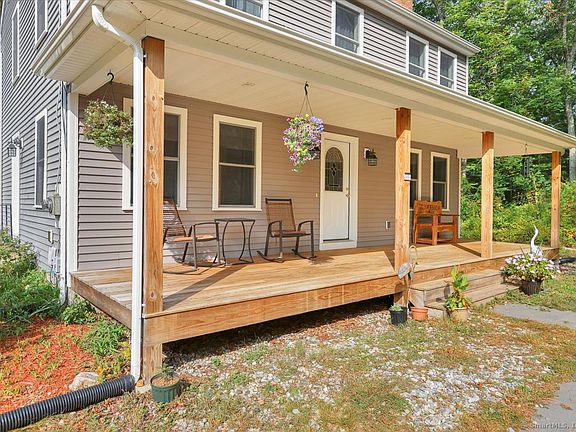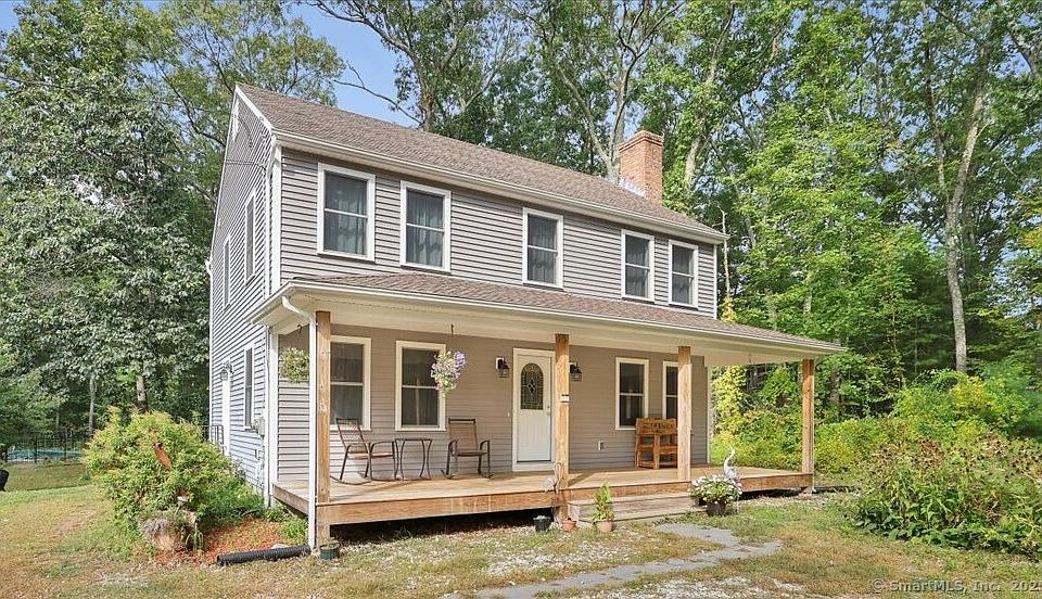 40 Old Tolland Turnpike is a well-cared for and updated colonial, located on a secluded 3.4-acre lot full of wildflowers, stone walls and mature trees. The covered front porch, inground pool and recently added sunroom are ideal for anyone who likes to entertain! A flexible floor plan and hardwood flooring throughout this home make it easy for you to create spaces that accommodate your lifestyle. Whether you need a home office, large dining room, informal dining area, living room or playroom, this home provides that flexibility. The custom beams and fireplace add to the charm and warmth of the dining and living rooms. The kitchen has been updated with quartz counters, tile flooring and new cabinets. In the back of the house is the recently added sunroom with large windows and sliders, that give you the feeling of being outdoors. A half bath and laundry room complete the main level. On the upper level are 3 good-sized bedrooms with hardwood floors and a remodeled full bath. The basement is unfinished and could be finished in the future. Outside you will find a nature lovers paradise- birds, wild life, gardens, stonewalls, firepit, pollinator plants and a fenced in patio surrounding the inground pool. If you like to get out and exercise, there is open space and walking trails nearby. This home is conveniently located just a few minutes from UCONN, ECSU and Windham Hospital. Roof, windows, siding, boiler, well pump, oil tank and pool liner have all been replaced.