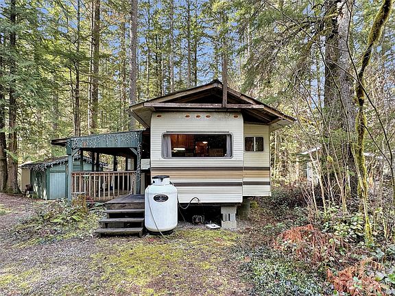 Get your start at the Glen with this huge lot in a great location! Across the street from a comfort station and playground, this property currently sleeps 6. Large fire pit area with several wood sheds set up for privacy in the heart of Div 1. Shed on site for extra storage, plenty of room to add a gazebo. Huge covered deck has a spot for your BBQ as well as room to dine out under cover. Updated flooring inside, full bathroom, a bedroom and bunkbeds. Just 15 minutes from the base of Mount Baker as well as Silver Lake. The Glen amenities include two pools, a sauna, hot tub, basketball & tennis courts, two lodges, events & activities, 24/7 security and more. Zoned recreational limited to 120/nights per year occupancy. No rentals allowed.