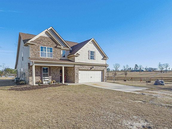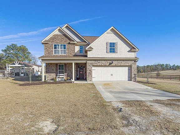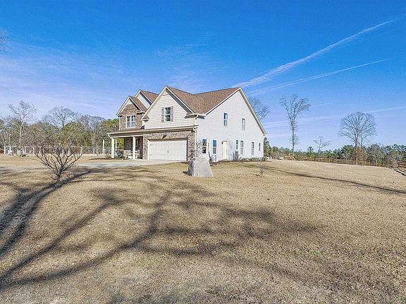 Room to roam! This amazing custom home has over 3200 square feet, 6 bedrooms, 3.5 baths and is situated on over 6 acres with an established horse farm and 2 private ponds. This home provides a great, open floor plan that flows well with plenty of room for everyone. A spacious kitchen with tons of storage and counter space, a pantry and eat-in bar. The living room has trey ceilings and a brick fireplace that leads to the screened in porch. Located on the main floor you will find a spacious primary suite with a walk in closet and private bath with double vanities and a glass shower. Upstairs are 5 additional bedrooms each with large closets that share two bathrooms. There is an attached two car garage that is heated square footage equipped with a mini split system. Outside you will find an entertainers paradise with a 16'x32' saltwater pool (built in 2020) and covered outdoor kitchen with a sink, refrigerator and grill. The 30'x70' horse barn that is already outfitted with plumbing and electrical features a concrete floor, 10x10 tack room, feed area and drain, 4 - 10x15 walk out stalls. The field is close to 6 acres with planted and maintained bermuda/bahia grass. Established pasture and secure fencing in place is just waiting on your horses or other animals. There is a 100'x300' professionally graded turf riding area. Don't miss the 2 ponds on the property- one is spring fed and the other for overflow. Make an appointment to see this one of a kind property today!