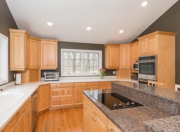 Located conveniently in Central Woodbridge, this well-maintained and move-in ready Ranch-style home must be seen. With 4 bedrooms, 2 full bathrooms, and 1 half bath, this tasteful home has 2867 sq ft (not including 700+ sq ft of finished space in the lower level). Set on a lightly-wooded lot of 2.6 acres, this home has a spectacular kitchen with a cathedral ceiling, recessed lighting and all new stainless steel appliances (dishwasher, refrigerator, double-ovens) and a new cooktop. With windows lining three sides of the kitchen, and a center island with granite countertops and breakfast bar seating, the kitchen is one of this home's most special spaces. The adjoining formal dining room, living room and family room are beautifully styled and, with a large outdoor mahogany deck, provide a relaxed setting for comfortably entertaining family and friends. There is also a study/office off the front foyer with built-in book shelves that offers great privacy. The home has many elegant finishes such as hardwood flooring, a stone-faced fireplace, crown molding, 2 sets of French Doors, and china closet. The Master Bedroom is very spacious w a walk-in closet and dressing area and separate tub and shower area. The 3 other bedrooms are well-sized. Lastly, there is a lot of storage space with a 2 car garage, a walk-up attic and a large unfinished basement area. Home is wired for emergency generator.