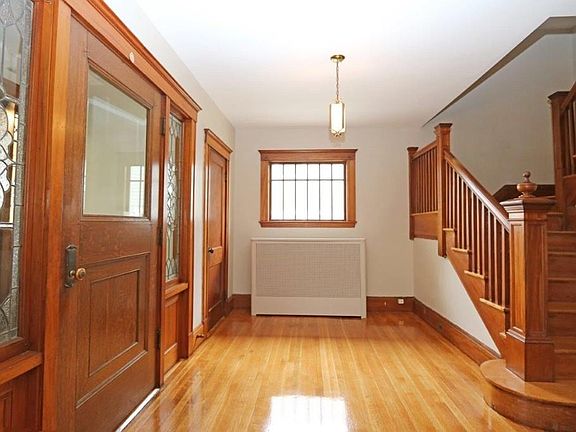 Traditional Bellevue Hill Colonial with Period Details and Charm, Family home for over 75 years, Spacious Foyer with leaded glass windows leads to Fireplace living room with gumwood and moldings throughout, Dining room with Stunning Timeless Leaded glass Built-in, Kitchen with oak cabinets , High ceilings throughout, 1st floor bath with shower, 4 good size Bedrooms on the second floor with full bath and shower, 2 additional bedrooms on the 3rd floor, freshly refinished hardwood floors throughout and interior paint, 2 car garage and yard, newer roof and heating system. Walk to train, shops and restaurants.