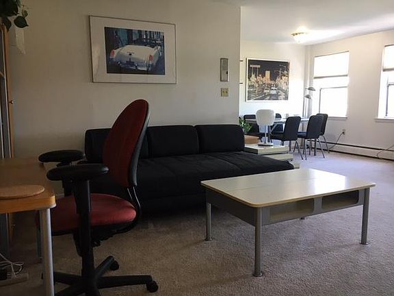 XL FURNISHED STUDIO *Hartford's West End* Walk to UCONN Law (40 Owen St, Hartford, CT) WEBSTER CONDOMINIUMS (adjacent to Clemons Place). Condominium building with intercom and laundry facilities is safe and quiet. Extra-large furnished studio (approx. 500 square feet) with fully furnished kitchen and bath including: sleeper sofa, bed linens, bath towels and pillows, dishes, glassware, flatware, pots and pans. Rent includes all utilities: heat, hot water, electricity, high speed internet, WiFi and air conditioning. Amenities include unassigned off-street parking, dishwasher and smart TV with Alexa voice remote. Smoke-Free. No pets. $1100 with 12-month lease. One month security deposit required. Immediate availability.