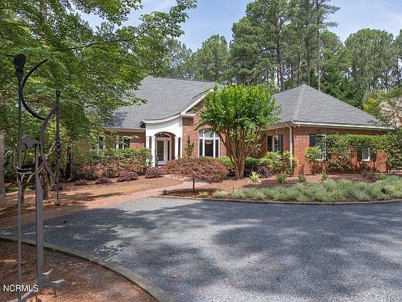 SELLER MOTIVTED. Seller can accommodate a Closing prior to December 30, 2023. Gorgeous home in desirable Pinewild Country Club a gated community less than 2 miles from the Historic Village of Pinehurst. Stunning entrance with 11 1/2 ft ceilings and a wall of windows overlooking the golf course. Located on the Par 5 eleventh hole of the Holly Course, views of the golf course can be enjoyed from all the main areas plus the brick patio with new awning and the year round Carolina room. (Homes measures 3764 square feet including Carolina Room). Handsome office off main living area with built-in book shelves can be used as 4th bedroom. Kitchen open to breakfast area and large family area with walls of Pella triple pane windows bringing in abundant light throughout. Two additional bedrooms, one with a queen Murphy bed, complete the guest side of the split bedroom floorpan. Pinewild boasts forty eight holes of golf, a world-class practice facility and Golf Academy, a 25-meter Olympic swimming pool & children's wading pool, 4 Har-Tru tennis courts and centrally located clubhouse which houses the Pro Shop, locker rooms, dining rooms, snack bar and spectacular patio overlooking the Magnolia course. Pinewild Membership available for transfer with buyer to pay all fees associated with transfer.