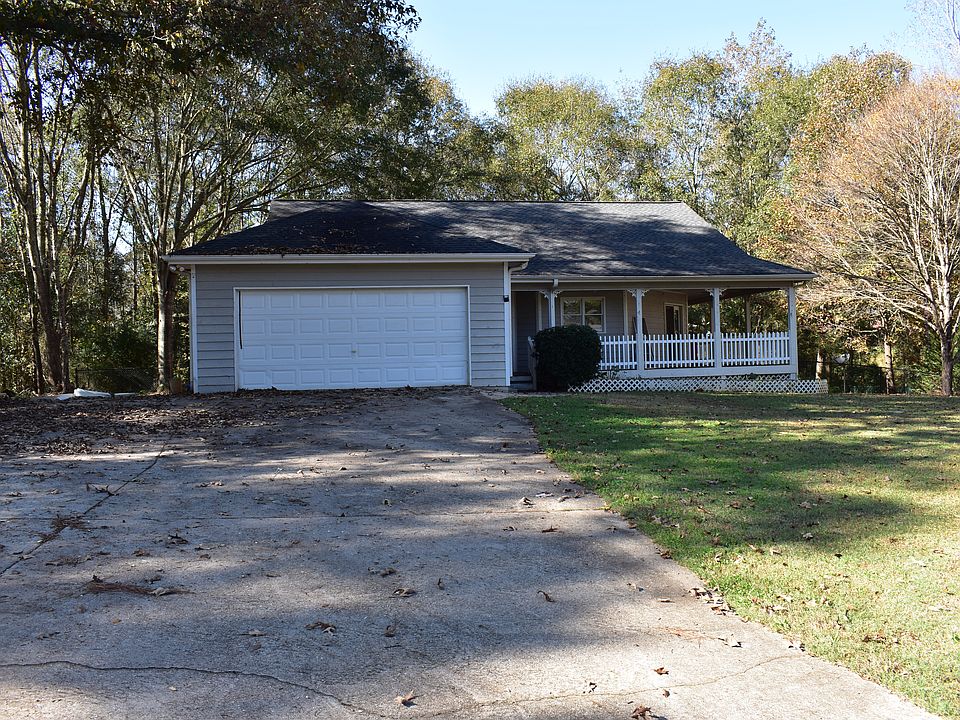 Come see this 3 bedroom 2 bath ranch home in desirable Trotters Walk subdivision. Stone fireplace and tray ceiling in the living room. Master bedroom has tray ceiling, double vanity sinks and jacuzzi tub in the master bathroom. Eat in kitchen with wood cabinets and laminate counter tops. Wrap around front porch and enclosed sunroom. Laundry room has cabinets and shelving. Spacious fenced back yard with 2 outbuildings.