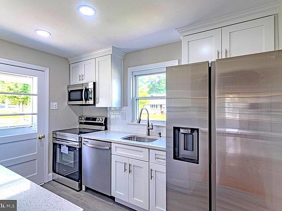 Adorable newly remodeled rancher in Delran. Beautiful new white kitchen, soft close cabinetry, with quartz countertops, and stainless steel appliances. Newly refinished gleaming hardwood flooring throughout. New bathroom with quartz vanity and tiled bath area. Three bedrooms plus an attached 13 X 13 rear sunroom with windows and screens plus rear door to backyard. Walk up attic, full basement with recent professional waterproofing. Detached oversized garage with attached workshop, on nice lot, this home is really cute, see it today!