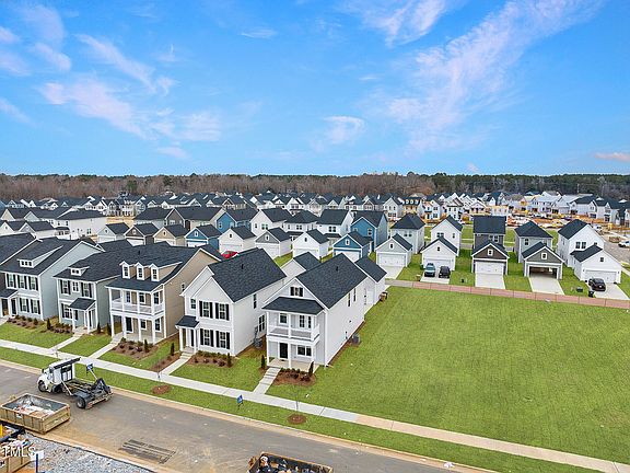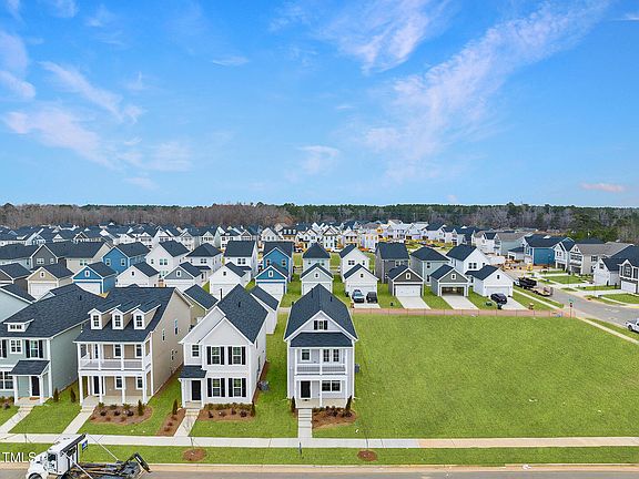 TURNKEY PERFECT! Fridge, washer, dryer and blinds included. Move right into the GOLD CIRCLE SETTING of this Charleston influenced home serving Southern charm in spades! Double stacked front porches beckon rockers and mint juleps...covered porch out back flows effortlessly to the flat backyard and DOUBLE GARAGE! Inside a bevy of upscale finishes - quartz for miles, designer kitchen with butlery and GAS RANGE. Everyone gets a direct bath access! The setting? Next to an HOA maintained common green! Open the door and romp around on yard you don't maintain. For even more FUN, stroll over to the pool, pickleball or playground - sidewalks aplenty! Best part? We're in the LOCATION that delivers INTOWN Clayton convenience with life at your fingertips! Schools, grocery, dining, shopping all a quick dash. RTP/RDU International? Now just a quick ZIP up 540! Ever been swept off your feet by a house?