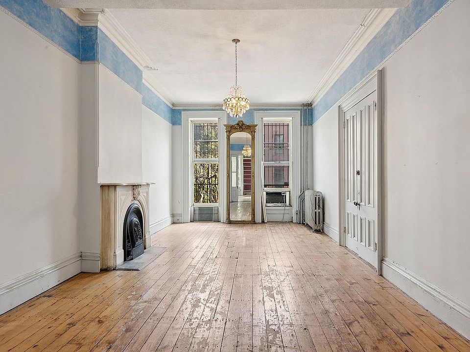 This 20x45 home has over 2,760 sq ft of livable space featuring 5 bedrooms and 2 full baths. Composed of two apartments. Unit 1- 3 bedrooms, 1 bath, Unit 2 - 2 bedrooms, 1 bath. This townhouse with a north/west orientation, high ceilings, a total of 5 marble fireplaces, and oversized windows, and two original floor-length built-in gilded mirrors.
