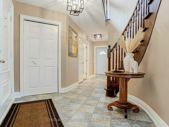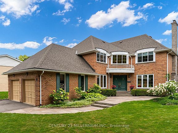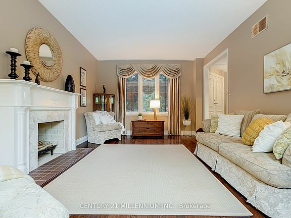 Fabulous One Of A Kind, Chateau inspired home situated in a quiet court location adjacent to Ridgehill Park/Conservation with an oasis entertainers dream yard straight out of "Homes and Gardens' ' Magazine. Inground Roman Style saltwater pool, pattern concrete, wood deck, many perennials, shade trees, hardscaping and total privacy. Gorgeous interior with a unique floor plan featuring, huge sunken living room with formal fireplace, separate dining room with stone fireplace, large Eat-In Kitchen with ample maple cabinetry, glass display cabinets, pantry, under valance lighting, double corner sinks/Window feature, S|S Appliances, sliding door walk out to deck. Main floor family room with a huge picture window and pot lighting. Combination laundry room/Mud room/Interior garage access. Oak spiral staircase, huge upper hallway with sun filled window/Juliette balcony. Four extra large Bedrooms, 4 P.C ensuite bath with bidet/toilet combination. Four renovated bathrooms/Ceramics/Soaker Tub/Tempered glass separate shower-Stall. Professionally finished lower level recreation room with fireplace and kitchenette/Pot Lighting, Open concept games room (Could be 5th bedroom), upgraded in laminate flooring. All upgraded windows, hardwood flooring throughout. Rare opportunity in executive Ridgehill Manor, A MUST SEE!