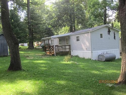 Nice 1985 14X60 Manufactured Home on a Lovely wooded end lot with Privacy. Back deck with aluminum awning to enjoy Yard. Split floorplan with bed and bath at each end of home. Vinyl Plank flooring in Living room,kitchen and Master bedroom. Community fee of $464.00 includes all water,sewer, trash and snow removal.