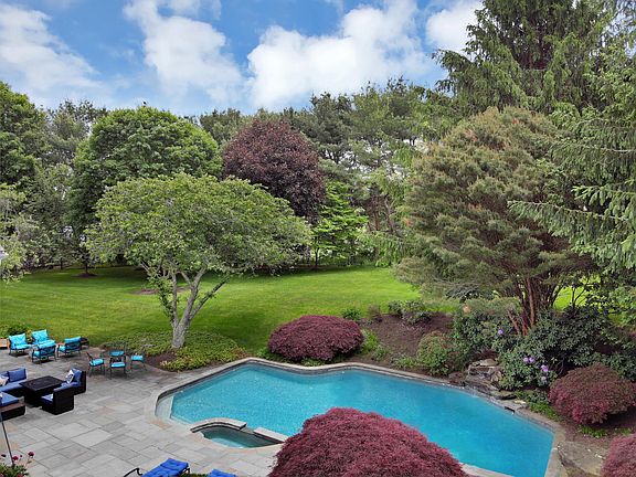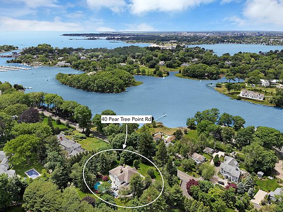 Situated high above the Goodwives River, between the iconic Rings End Bridge and Pear Tree Point Beach, is a stunning Georgian Colonial with over 5000 sq ft of living space set on 1.34 acres. This 5 bedroom, 5 bath house opens to a two-storey foyer with sweeping staircase, leading into a great room with french doors to the patio and pool. This great room is the center of the home, leading into a fabulous Chef's kitchen with top of the line appliances and granite countertops. Outside is a free form pool with waterfall, large patio, lawn and mature plantings. There is a formal dining room looking towards the Goodwives River with an interconnecting wetbar to the kitchen. A formal living room, master suite, Office/Sitting room complete this level, while upstairs are four bedrooms and two baths