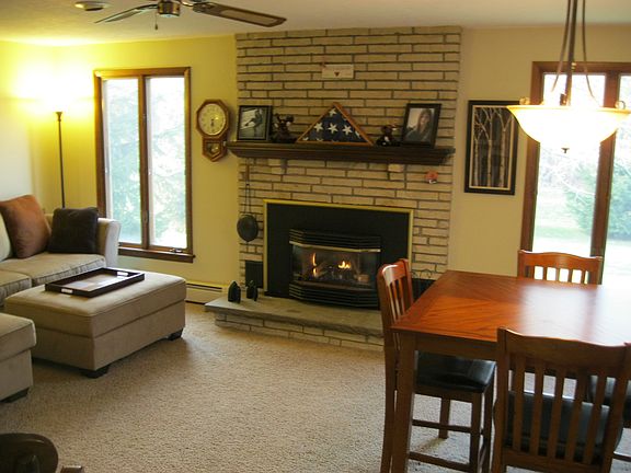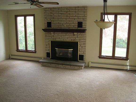 Ranch with 3 bedrooms (possible 4th bedroom), 2 baths, family room w/gas fireplace, living room with wood burning fireplace. Nicely finished basement with dry bar and many built-ins & room for a pool table. The 1 1/2 car garage is insulated & heated w/220. Patio & deck, on sewers, newer boiler, appliances included. Hilton Schools.